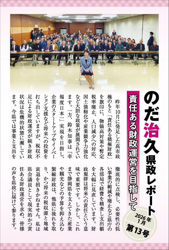 2026年1月「のだ治久県政レポート第13号」を作成致しました。