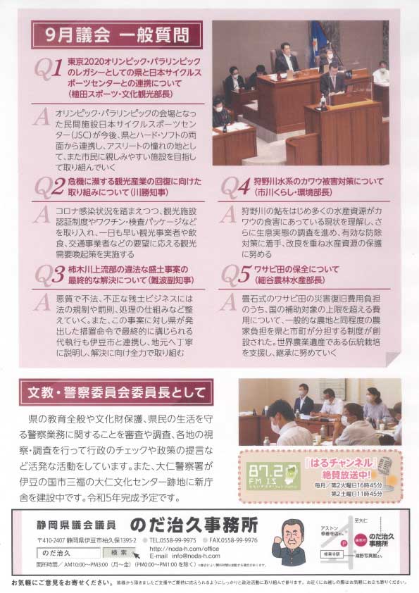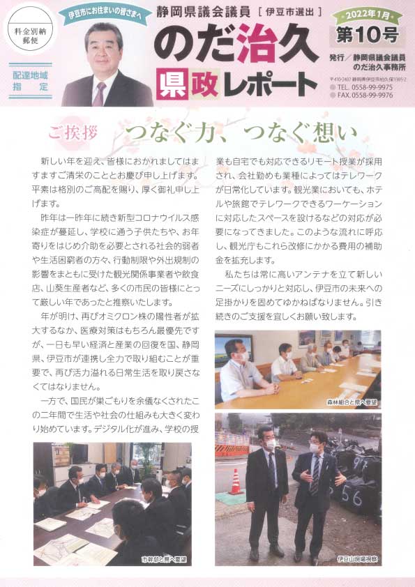 2022年1月「のだ治久県政レポート第10号」を作成致しました。